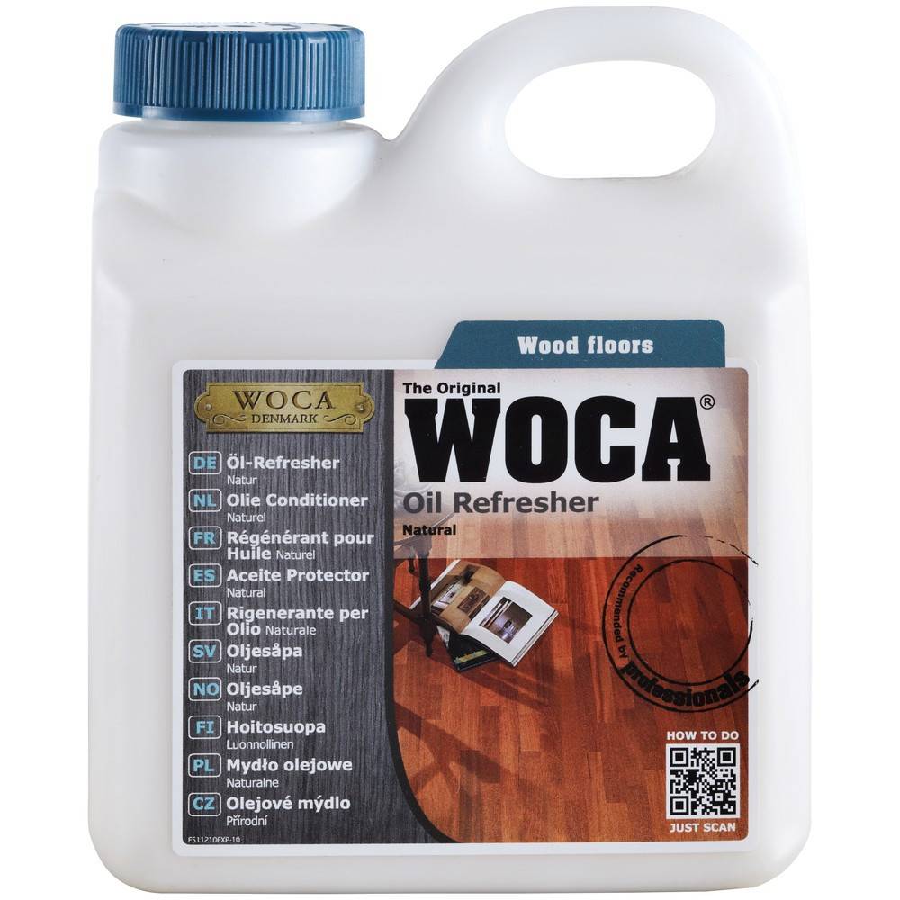 Woca olie conditioner reinigt en geeft tevens voeding aan de vloer. Kan gebruikt worden op alle soorten geoliede oppervlakte zoals vloerolie, hardwaxolie, UV geoliede vloeren. Leverbaar in 2 kleuren, naturel en wit.